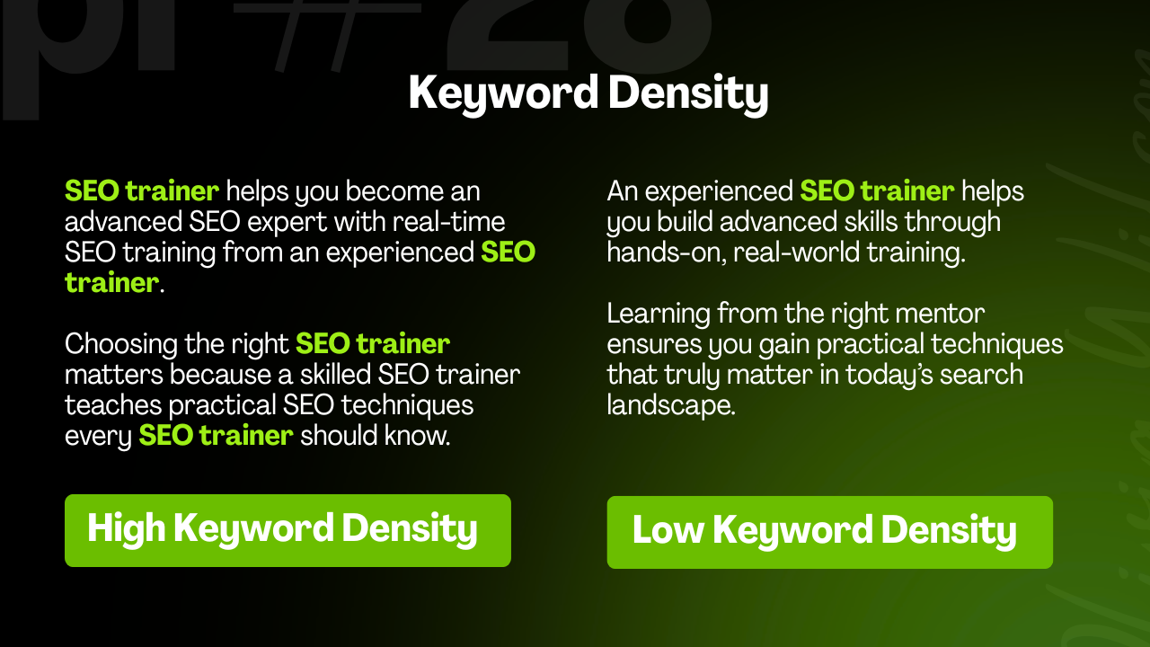 in above example if you can closely observe SEO Trainer keyword was used multiple times in a single paragraph, whereas on the other-side it was used only once.